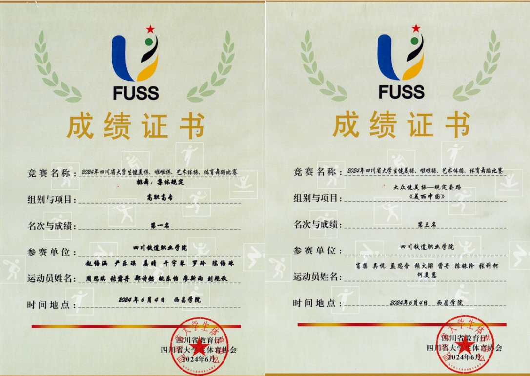 6月3日-5日,由四川省教育厅主办、四川省大学生体育协会执行、西昌学院承办的2024年四川省大学生健美操、啦啦操、艺术体操、体育舞蹈比赛在西昌学院安宁校区体育馆举行,beat365组织的两支代表队参加了本次比赛高职高专组两项竞赛,勇夺排舞赛项第一名、健美操比赛第三名。