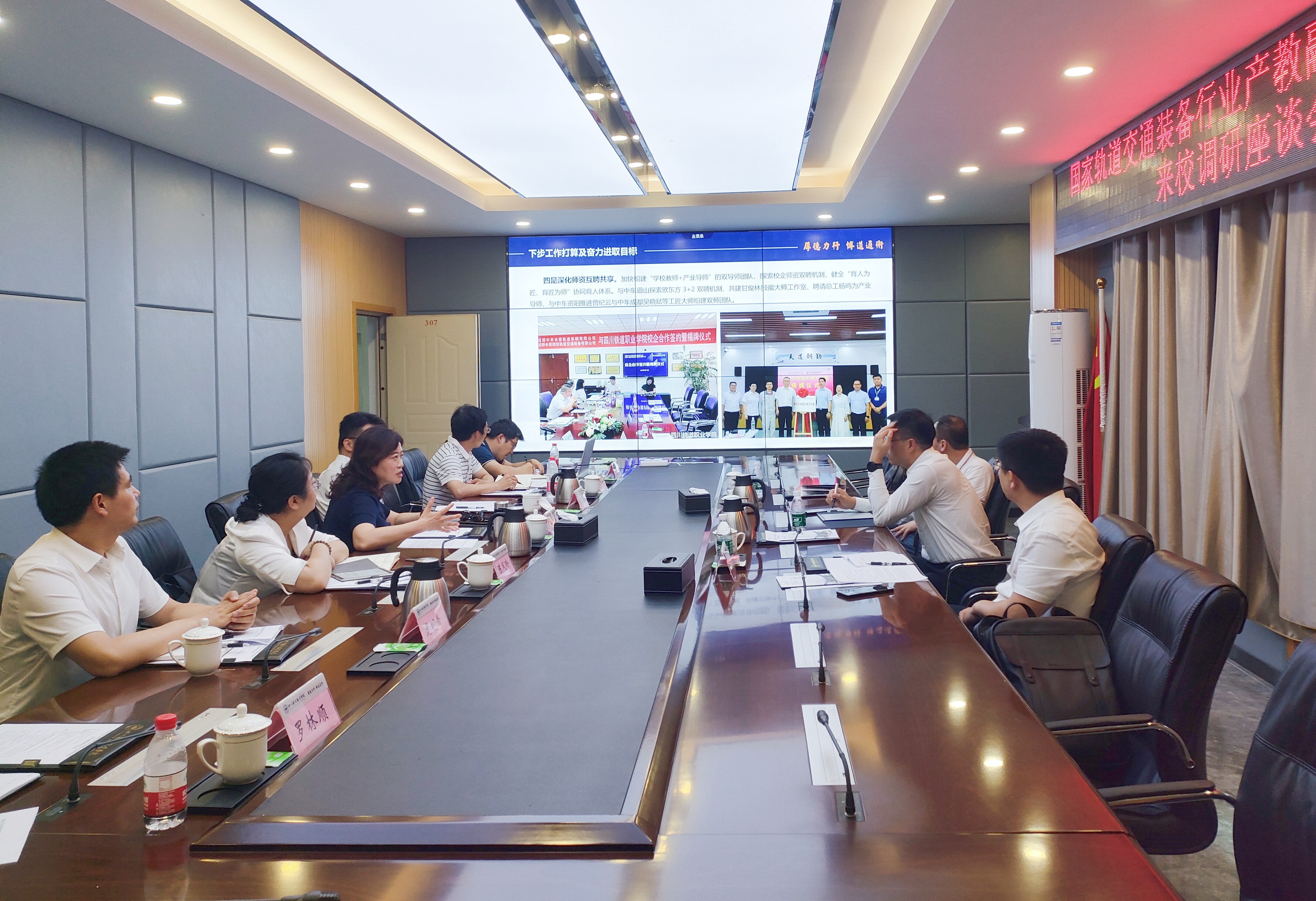 考察组一行在第五会议室召开“依托共同体资源共享,赋能学校高质量发展”为主题的交流座谈会,双方围绕“智能制造”“人工智能”“智慧运维”“新质生产力”等领域展开交流。赖芳对学校在校企共建实训基地、校企共同开发课程教材,随企出海、产教融合等方面工作情况进行了介绍,并重点介绍了学校参与轨道交通装备行业产教融合共同体工作推进情况。 考察组充分肯定了beat365悠久的办学历史和深厚的铁道文化底蕴,对共同体目前的工作推进情况做了简要介绍。李志磊表示,中国中车集团作为共同体牵头建设单位,将最大限度开放各类资源,支持教育事业发展,探索与共同体内院校深度合作,建立以职业能力培养为基础,以岗位技能需求为导向的人才培养机制,探索一贯制人才培养模式,打通人才培养质量提升通道,探索校企师资共建共享,发挥地域优势和企业资源优势,推进高标准实训基地建设,同时将推动中车集团属地企业与当地院校积极对接,实现资源共享,相互成就。 会上,宋新,中车推进共同体建设工作组办公室专员、中车唐山公司车体工艺部部长、教授级高级工程师李宝旺也先后发言,希望学校围绕产教融合共同体工作要求,增强高质量发展新动能,共同推进轨道交通装备制造产教融合共同体事业发展。