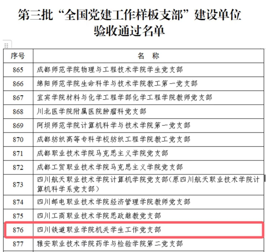 近日,教育部办公厅公布了第三批新时代高校党建示范创建和质量创优工作验收结果,学校机关学生工作党支部经过对标自查总结、省级党委教育工作部门把关审核、教育部思想政治工作司审查,顺利通过验收。