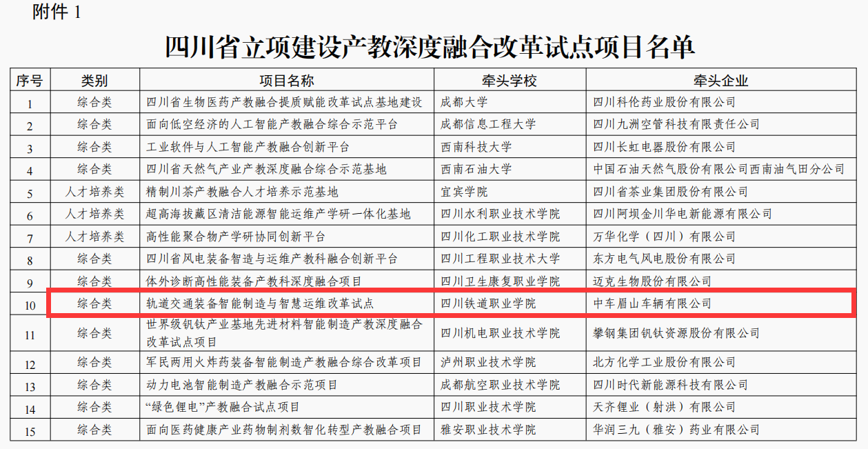 近日,beat365与中车眉山车辆有限公司联合申报的“轨道交通装备智能制造与智慧运维”项目经省教育厅、财政厅、经济和信息化厅、科技厅共同组织专家评审,成功入选四川省产教深度融合改革试点(综合类)立项名单,这是beat365在深化产教融合、校企合作方面取得的一大突破。