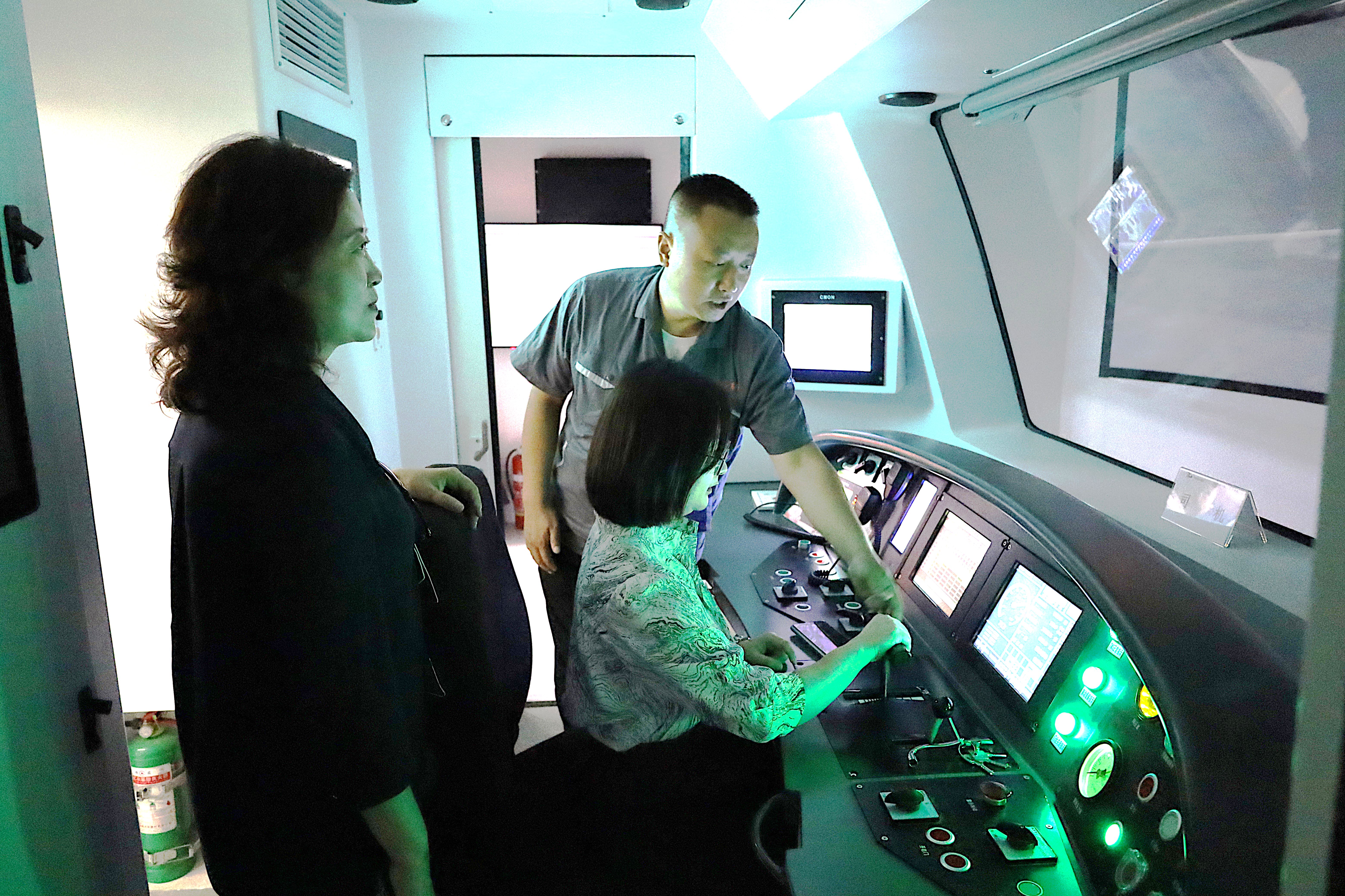 杨丹一行实地考察了学校的教学实训场所。在“四电集成”实训基地,仔细观摩了铁道工程技术、铁道供电技术等专业实训教学,在动车组模拟驾驶考培基地,亲自体验了模拟驾驶系统。杨丹一行还参观了学校铁路红色文化精神谱系博物馆暨校史馆,通过珍贵的历史资料和实物展品,深入了解了学校的发展历程和铁路文化传承。
