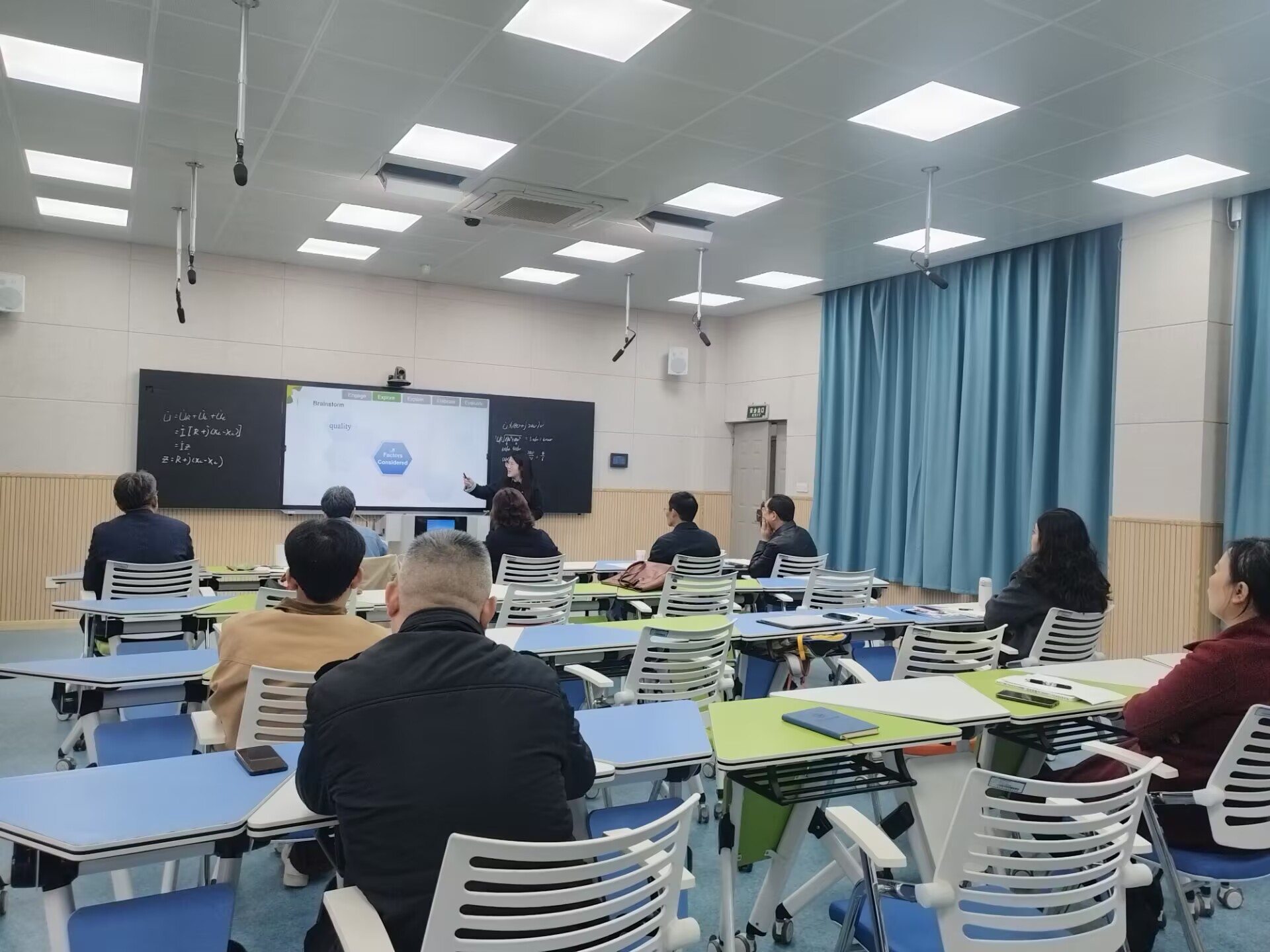 14日上午,赖芳现场观摩林晨佳、高玉萍两位教师的说课与试讲,认真听取教学设计阐述,观看课堂教学片段。她强调,教师要树立终身学习理念,争当教学与科研的先锋;主动对接成都校区,推动师资队伍一体化发展;深入研读职业教育相关政策文件,建标准、明方向,积极思考转型路径,不断提升创新能力和育人水平。