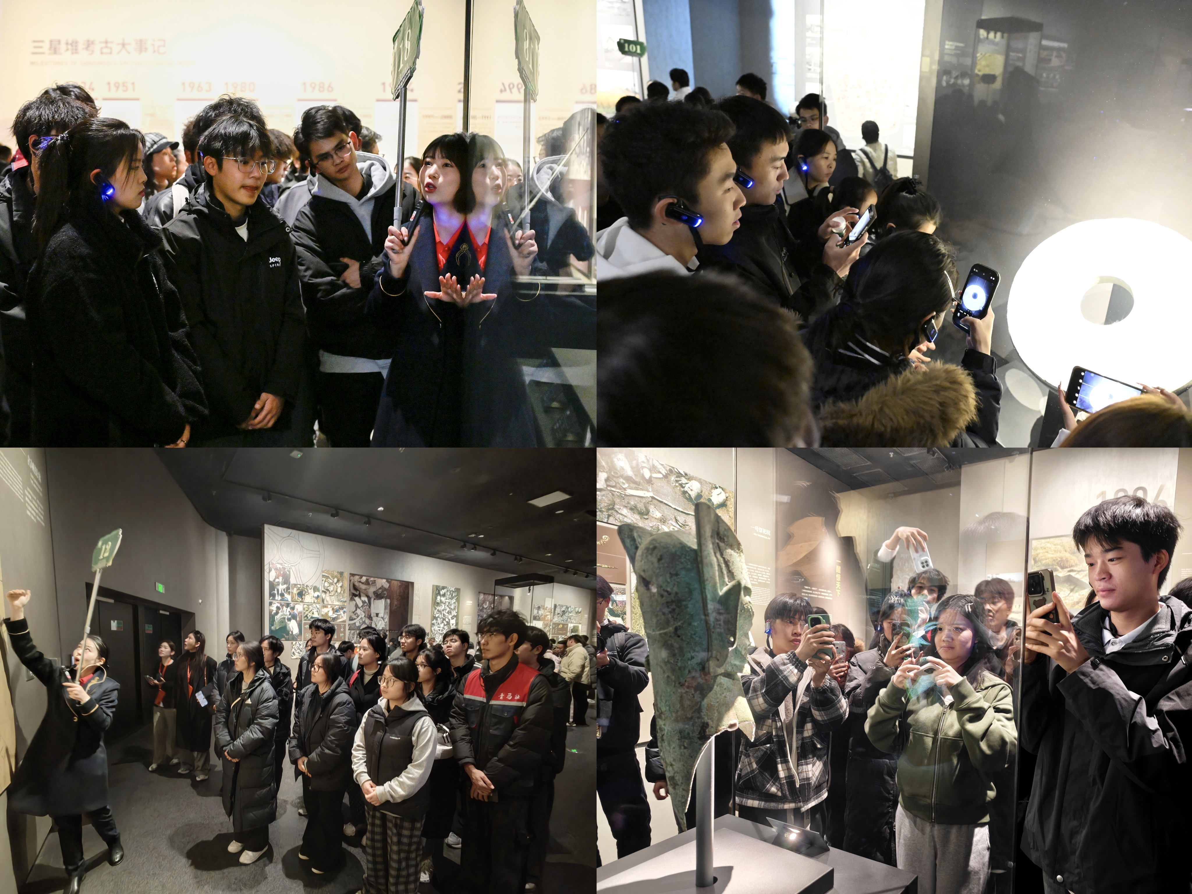 为深入学习贯彻习近平文化思想,弘扬中华优秀传统文化,增强青年学子文化自信,12月8日,校团委联合马克思主义学院组织47名“青马工程”学员、青马学社社员及校级学生骨干,赴广汉三星堆博物馆开展主题思政研学实践活动。