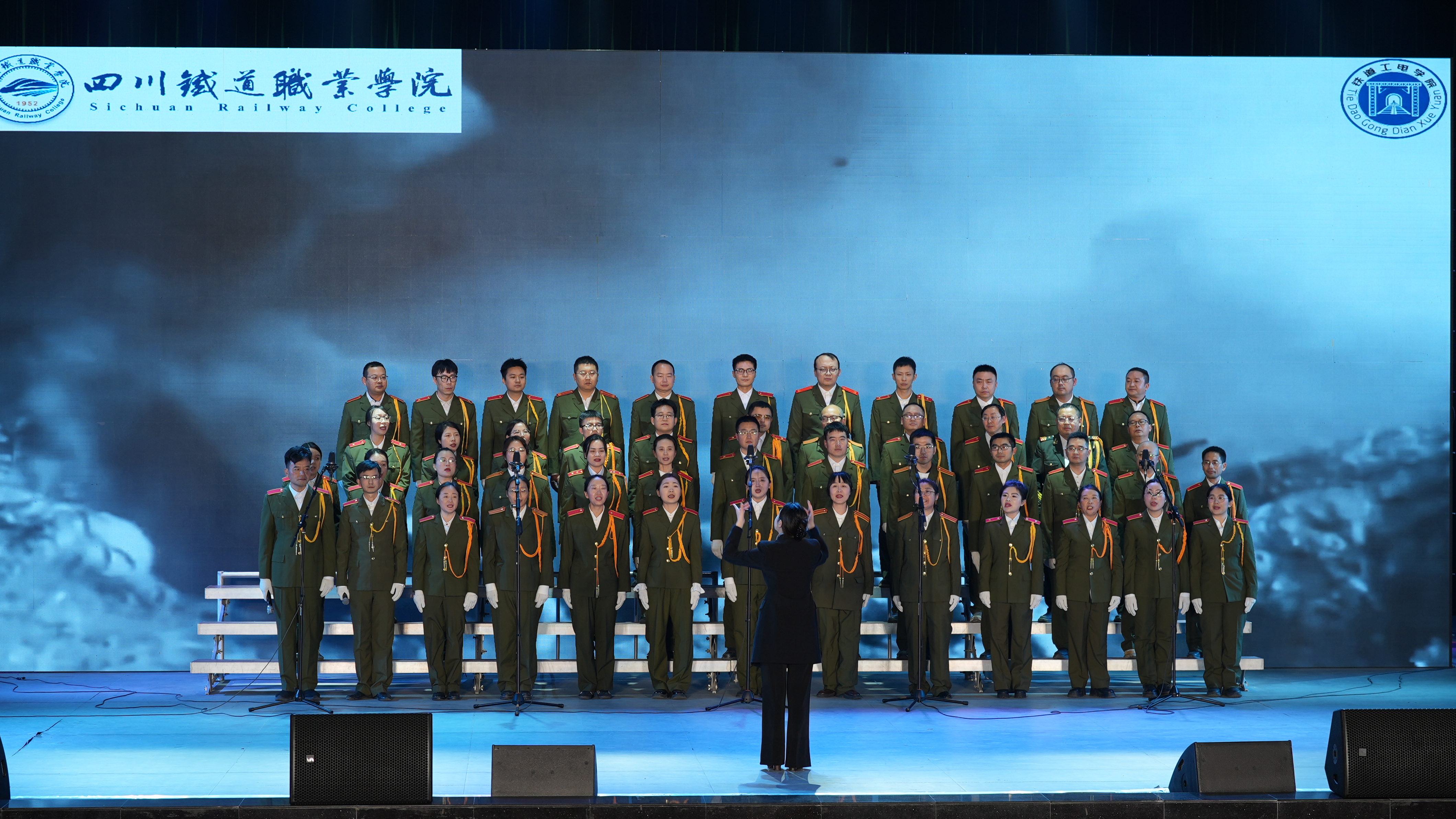 电信工程学院分工会凭借出色的艺术表现力和情感张力荣获一等奖;经济管理学院分工会、公共教学部分工会获二等奖;城市轨道交通学院分工会与综合二分工会联合代表队,机车车辆学院分工会、铁道工电学院分工会、学生工作分工会代表队分获三等奖。各参赛队伍巧妙融合朗诵、舞蹈、情景表演与道具展示,在突出合唱艺术主体性的同时,极大提升了舞台感染力。现场高潮迭起,掌声雷动,气氛热烈。