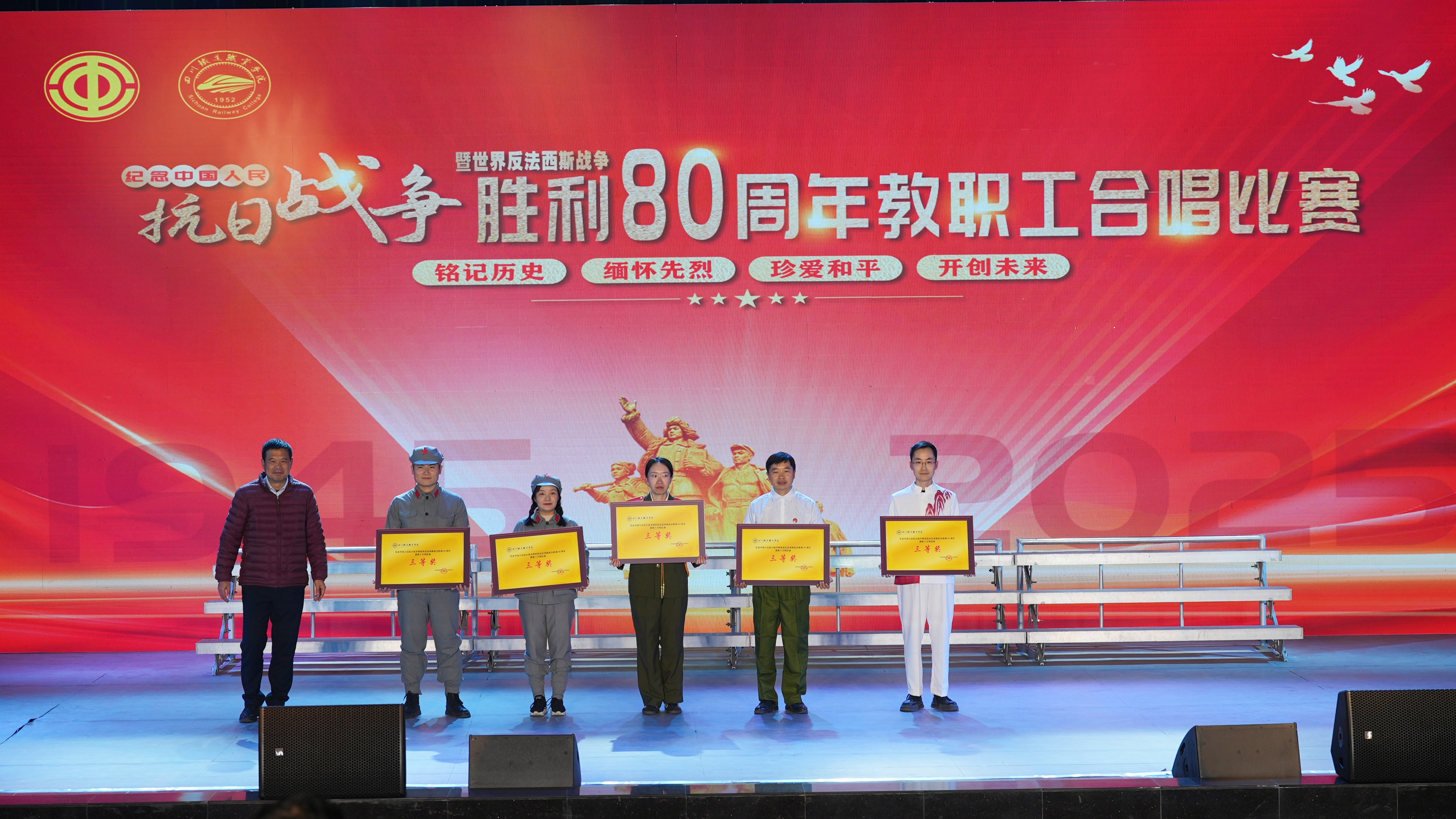 为隆重纪念中国人民抗日战争暨世界反法西斯战争胜利80周年,弘扬伟大抗战精神,厚植爱国主义情怀,凝聚团结奋进力量,12月16日,校工会在大礼堂举办“铭记历史、缅怀先烈、珍爱和平、开创未来”主题教职工合唱比赛。全校教职工以嘹亮歌声重温十四年抗战的壮阔征程,用深情旋律奏响新时代奋进强音。