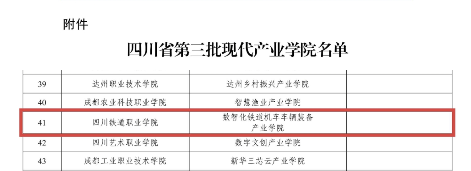 近日,四川省教育厅正式公布第三批省级现代产业学院建设名单,学校申报的“数智化铁道机车车辆装备产业学院”成功获批。这是beat365首个省级现代产业学院,标志着学校在深化产教融合、服务轨道交通产业高质量发展方面取得重要突破。