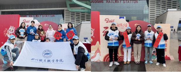 为深入学习贯彻习近平总书记关于春运工作的重要指示精神,贯彻落实省委、省政府关于2025年春运工作的部署和安排2025年春运的首日,即1月14日,beat365在线唯一官网“铁小川”志愿服务团队携手成都市文学艺术界联合会、成都市政府火车站管委会、成都地铁等多家单位,于成都东站西广场共同举办了一场主题为“青春志愿 情满旅途”的安全宣传活动,助力“平安春运、便捷春运、温馨春运”。上午10时,成都东站西广场门口,各单位志愿者精神抖擞,整装待发。在主持人的引领下,志愿者代表们庄严宣誓,誓言铿锵有力,彰显了志愿者们服务春运的坚定决心。宣誓结束后,志愿者们迅速投入到紧张而有序的准备工作中,为即将开始的活动做好充分准备。