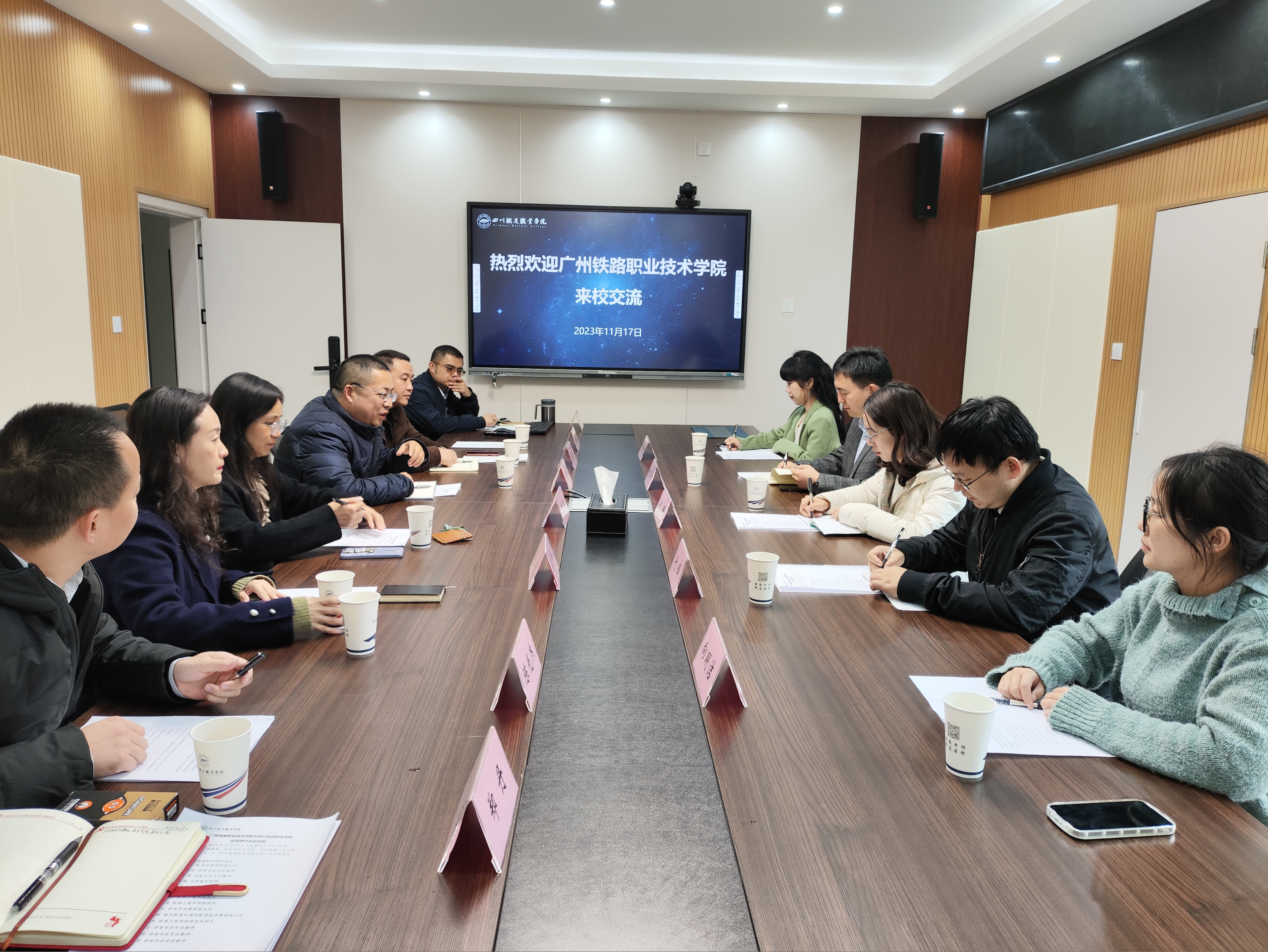 2023年11月17日下午,广州铁路职业技术学院供电专业教研室副主任杨琦、教学秘书彭子珊、辅导员向明洁、专任教师何东升及代锋等五人到beat365开展交流研讨,会议在第二会议室进行,铁道工电学院院长王立、副院长董浩、供电教研室主任唐玫、城轨供电教研室主任汪琪、学院学生科科长陈光杰等领导老师参加了座谈。