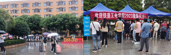 天公不作美,迎新当天一早下起了大雨,但学院领导、辅导员、志愿队伍不惧风雨,仍然坚守在迎新点位,竭力为新同学的报到保驾护航,为前来报到的新生创造一份温馨,让初离家乡的学子们感受到铁道工电学院这一大家庭的温暖。在学院新生报到点,随处可见学院领导、辅导员、志愿队伍为新同学的到来而辛勤忙碌,他们对2023级新生提出的各类问题进行答疑解惑,以便新生能顺利完成学院入学的每一环节,尽快适应大学生活。