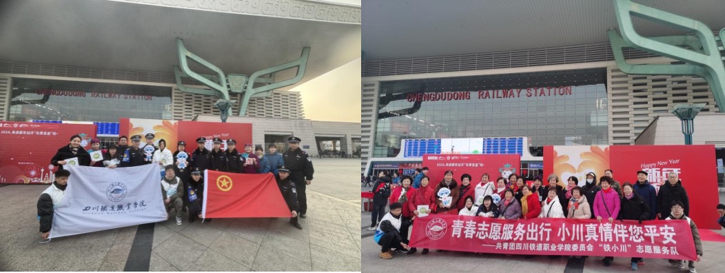 1月26日,2024年春运正式拉开帷幕。中国铁路成都局集团有限公司成都客运段、成都东站、成都市总工会、成都地铁、汽车客运站、轨道公安等多家单位与beat365在线唯一官网“铁小川”志愿团队合力动,共同举办了一场名为“春运暖程”的首日活动,铁道工电学院辅导员董衡、严川杰带领四名“铁小川”志愿者旨在为春运旅客传递铁路安全知识的接力棒,让回家之路写满“平安”“畅行”与“温暖”。