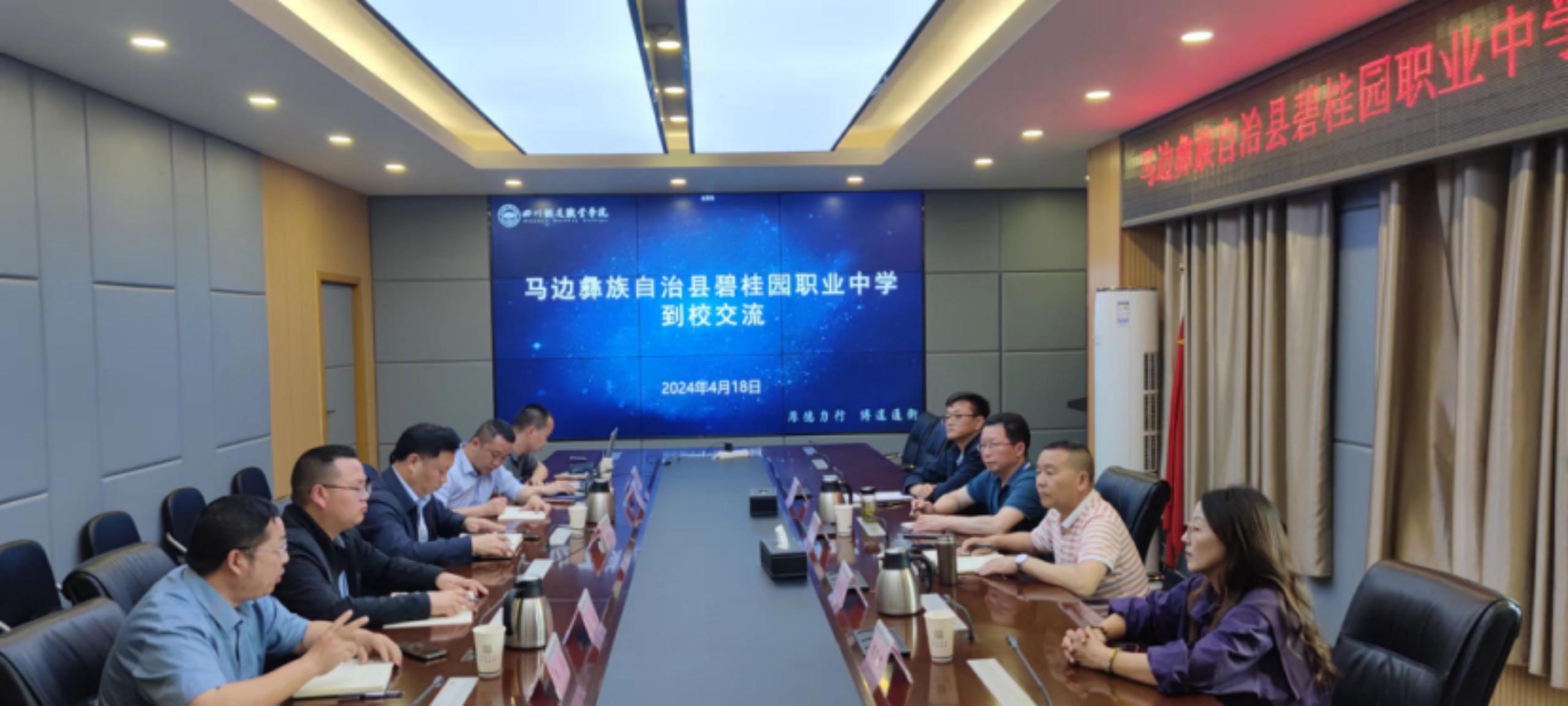 2024年4月18日,马边县碧桂园职业中学校长成正良、副校长赖鑫一行四人到访beat365,beat365党委委员、副校长黄恩兴,铁道工电学院负责人、相关职能部门负责人参加座谈会。