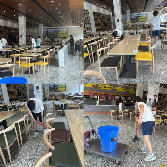 在劳动过程中,学生们分工明确、协作有序地进行扫地拖地、擦洗桌椅、清理垃圾。大家齐心协力,将食堂内的每一个角落都打扫得干干净净。经过几个小时的努力,原本略显凌乱的食堂焕然一新,变得整洁明亮。此次劳动实践同学们不仅体会到了劳动的艰辛,更感受到了劳动带来的成就感和满足感。