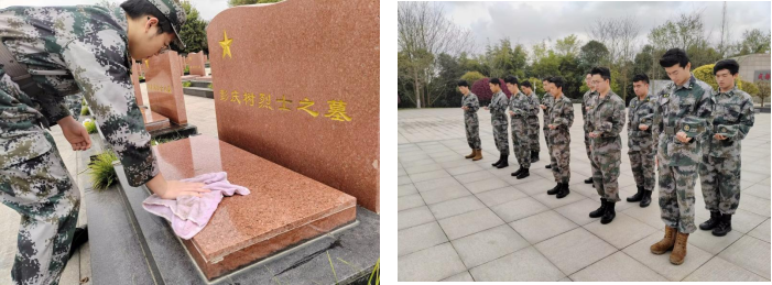 活动过程中,战术队全体成员齐唱国歌,整齐列队,在庄严肃穆的烈士碑前肃立默哀,表达对烈士的崇高敬意和深切悼念之情。随后,战术队副队长陈栩致悼词:“为人民解放而抛头颅洒热血的英勇烈士们永垂不朽。无论你们逝去多久,我们都将永远追寻你们的足迹,传承永恒的红色精神。我们接过的不仅是历史的火炬,更是民族复兴的使命。请先烈放心,强国有我”。默哀仪式完成后,战术队全体成员前往陵园为烈士们擦拭墓碑、分享感悟,并前往郫都区革命烈士纪念馆追寻先烈的足迹。