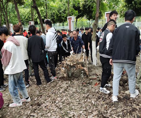 劳动活动主要包括:清除垃圾、捡拾石头至集中堆放点、平整绿化带。在活动过程中,同学们积极参与劳动活动,认真做好劳动工作:捡拾垃圾不怕脏、搬运石头不怕累,翻整土地不怕辛苦,互帮互助,一起完成300平米绿化带的清洁工作。在这过程中,不乏班主任的身影,班主任与所有同学一起劳动,一起谈心,轻松愉快地度过了短暂的劳动时光。借助这次劳动活动,既融洽了班级活动氛围,又拉近了师生距离,清洁了校园,愉悦了心情。“劳动最光荣、劳动最美丽”的话语进入同学心间。
