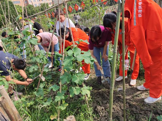 5月27日下午,雨过天晴,阳光明媚,电气工程系组织全系9个无课班级开展本学期第二次集体劳动教育活动——爱心农场锄草、松土活动。