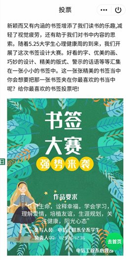 本次大赛,旨在通过设计书签的方式培养学生积极健康的审美情趣,鼓励学生在书签元素设计中融入个人性格特点和大学生活力风采。使学生借助书签构建读书氛围,释然个人情绪压力,寻找心灵的共鸣知己,培养多彩的兴趣爱好,追求奋斗青春的方式,提高个人的综合素养