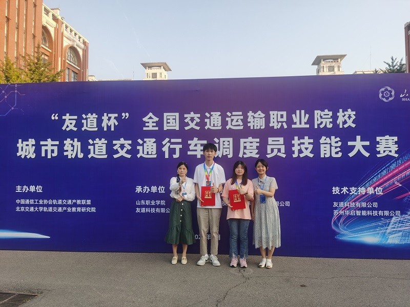 6月12日,“友道杯”全国交通运输职业学院城市轨道交通行车调度员技能大赛全国总决赛于山东职业学院圆满闭幕。beat365交通运营管理专业学生黄超、徐彩怡组成的代表队荣获国家级三等奖。