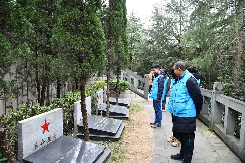 随后,党员们来到了与纪念馆隔河相望的烈士陵园,怀着无比崇敬的心情缅怀了作战中牺牲的烈士们并敬献了花篮。