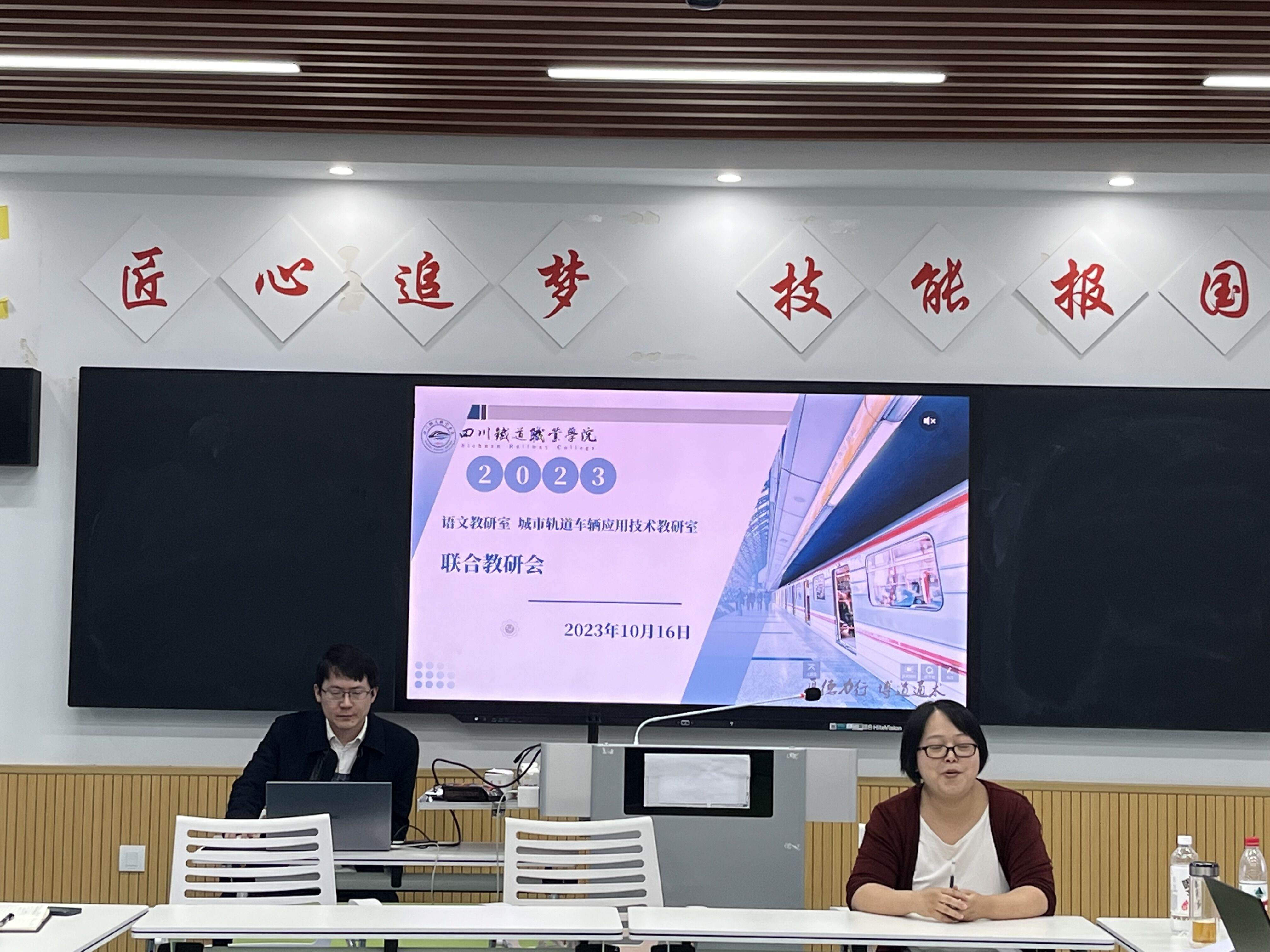 为加强公共基础课与专业课程的深度融合,充分发挥基础课程和专业课程协同育人作用,10月16日下午,语文教研室与城市轨道车辆应用技术教研室开展联合教研活动,就如何优化专业人才培养方案中大语文课程设置、提升人才培养质量等话题进行了深入交流与讨论。