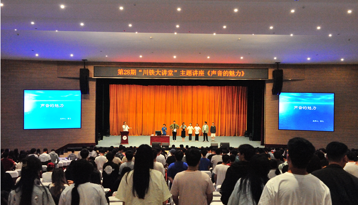 6月3日,学校“川铁大讲堂”特邀四川人民艺术剧院院长、国家一级演员、四川省戏剧家协会副主席,中国话剧“金狮奖”、公安政治部“优秀导演奖”、四川省“五个一工程奖”获得者董凡女士来beat365作“声音的魅力”主题讲座,四川人民艺术剧院国家二级演员谢黎明老师随同助讲。学校近900名师生现场聆听。