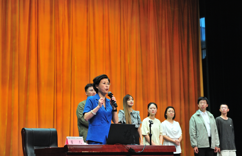 董凡老师围绕语言的作用和声音的重要性,以现场教学开放课堂的形式亲自指导师生发声技巧,亲自示范诗歌和台词的朗诵,让大家沉浸式体验到了声音艺术的魅力。董凡老师和谢黎明老师还共同表演了《金沙》《苏母》经典音乐剧目,他们精湛的演技、深厚的台词功底,赢得了师生们阵阵掌声和喝彩。