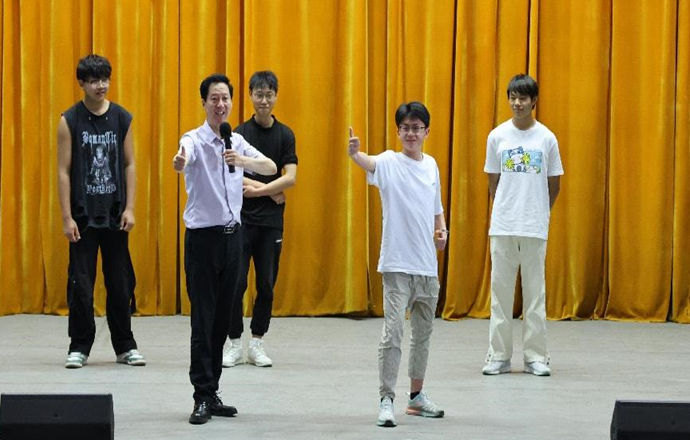 肖教授在讲授中简要介绍了川剧艺术的特点和影响,着重阐释了川剧唱腔之美、行当之美、身段身韵之美,现场示范并教唱了川剧剧目《小桃红》中的选段,带动师生共同感受川剧唱腔的悠扬婉转。随后,肖教授现场邀请学生代表沉浸式体验川剧的手、眼、身、法、步,深切感悟“台上一分钟,台下十年功”的艺术真谛。
