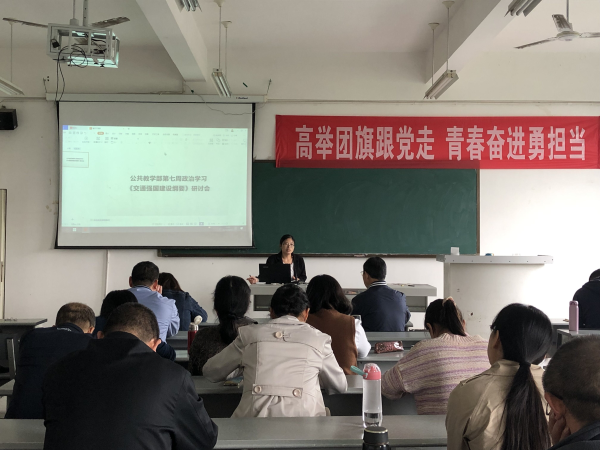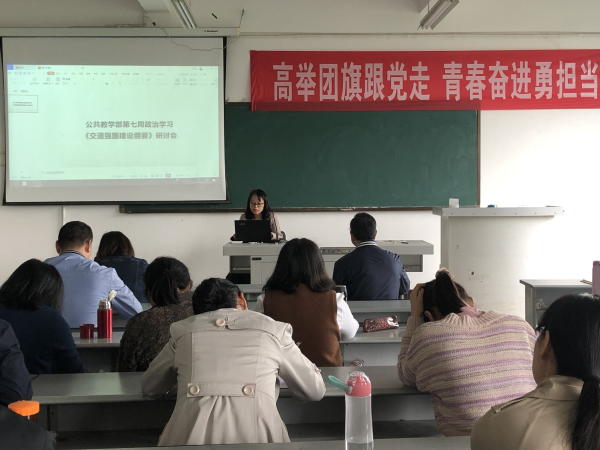 2021年10月11日下午,公共教学部在2419召开第七周政治学习。公教部副主任杨伦军组织部门老师学习了《中共四川省委四川省人民政府关于贯彻落实<交通强国建设纲要>加强建设交通强省的实施意见》《中共中央国务院印发<交通强国建设纲要》《四川省人民政府办公厅关于抢重大机遇推动轨道交通产业高质量发展的实施意见》等文件,部门全体教师参与了本次学习研讨会。
