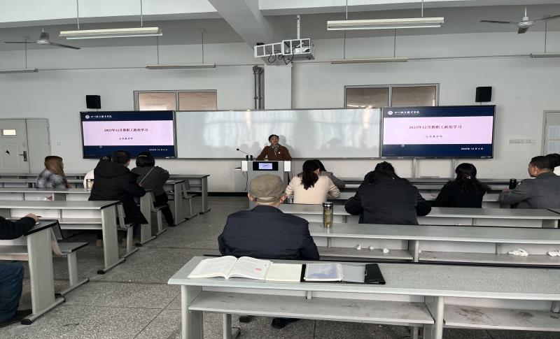 12月4日下午,公共教学部在2521教室开展了12月教职工政治学习活动,重点学习习近平总书记在二十届中央政治局第六次集体学习时的讲话精神和来川视察重要指示精神。本次会议由党总支书记翁静主持,全体教师参加,学校纪委副书记吴东到会一起学习。