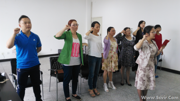 为了进一步坚定党员教师的理想信念,提高党性觉悟,增强党员教师的政治意识、大局意识、核心意识、看齐意识,坚定正确的政治方向,树立清风正气,2016年5月24日,思政、公共教学部党支部在2502办公室开展了“重温入党誓词、永远跟党走”的主题党日活动。除一位党员同志外出学习外,其余党员全部到场参加。