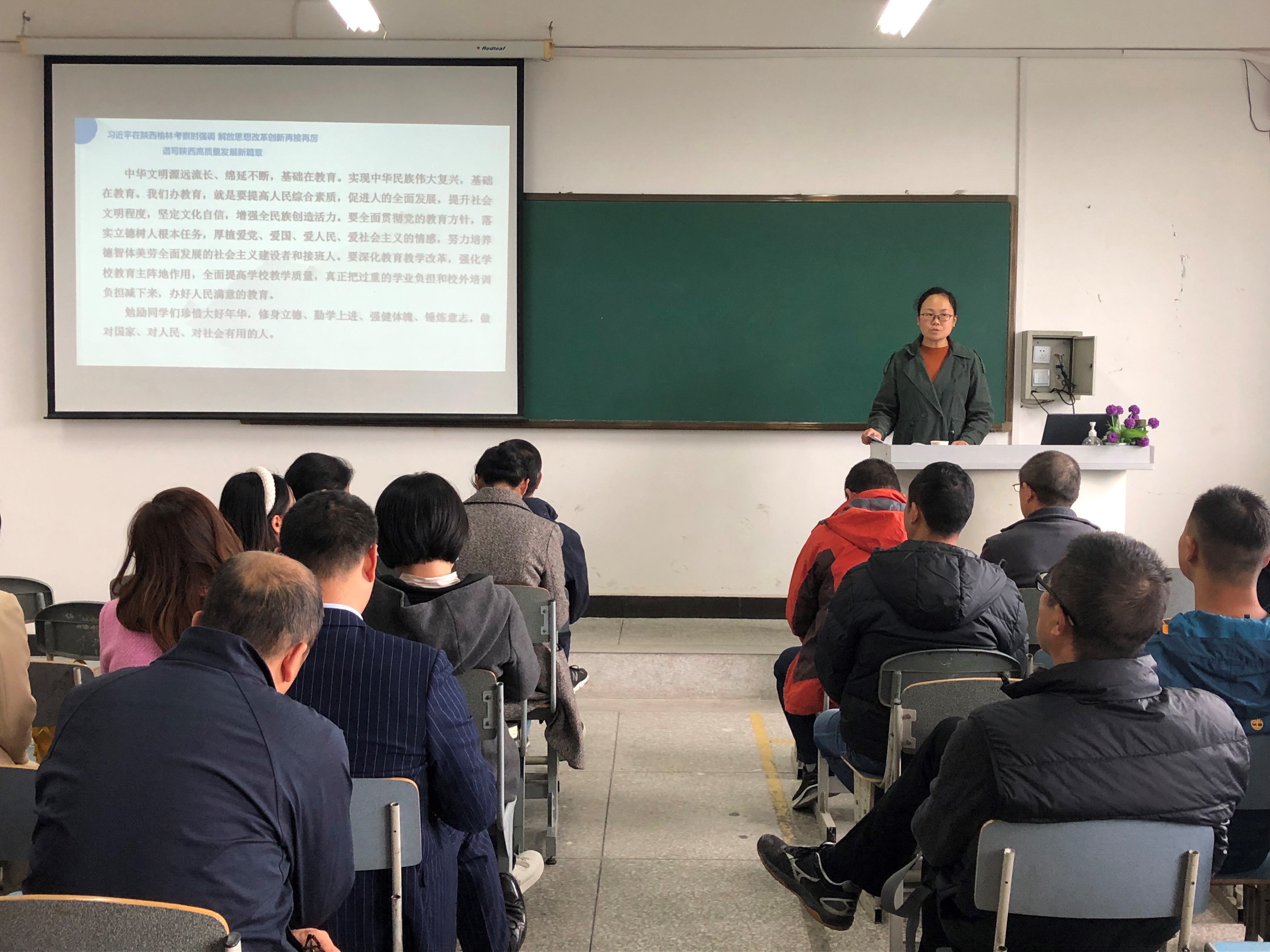 其次,大家明确我们要坚持全面贯彻党的教育方针,落实立德树人根本任务,厚植爱党、爱国、爱人民、爱社会主义的情感,努力培养德智体美劳全面发展的社会主义建设者和接班人。要紧紧抓住党中央国务院深化职业教育改革创新的重要契机,紧紧围绕学校“一线两翼三牛”的年度工作思路,坚决落实立德树人的根本任务,以本次学习为契机,立足各学科实际,深入推进“三教改革”培养出更多、更好的适合地方区域经济社会发展的高素质劳动者和技术技能型人才。
