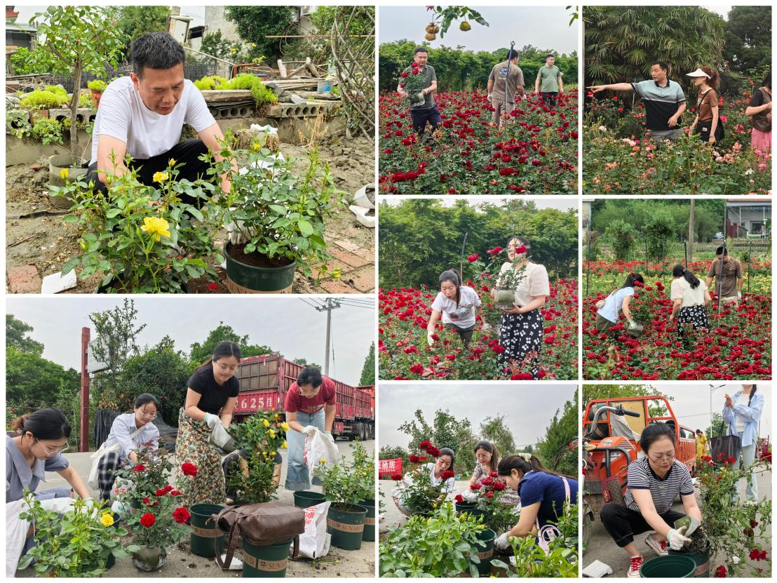 活动伊始,教职工们踏入濂溪村 400 多亩月季花盛放的花海。龙沙宝石的粉嫩、瑞典女王的典雅、红龙的热烈…… 百余种月季在阳光下交织成绚烂锦缎,馥郁花香随风浮动。大家或驻足细赏花瓣纹理,或在花径间合影留念,用镜头定格“人在花中游” 的诗意画面,在盎然生机中卸下心间疲惫。