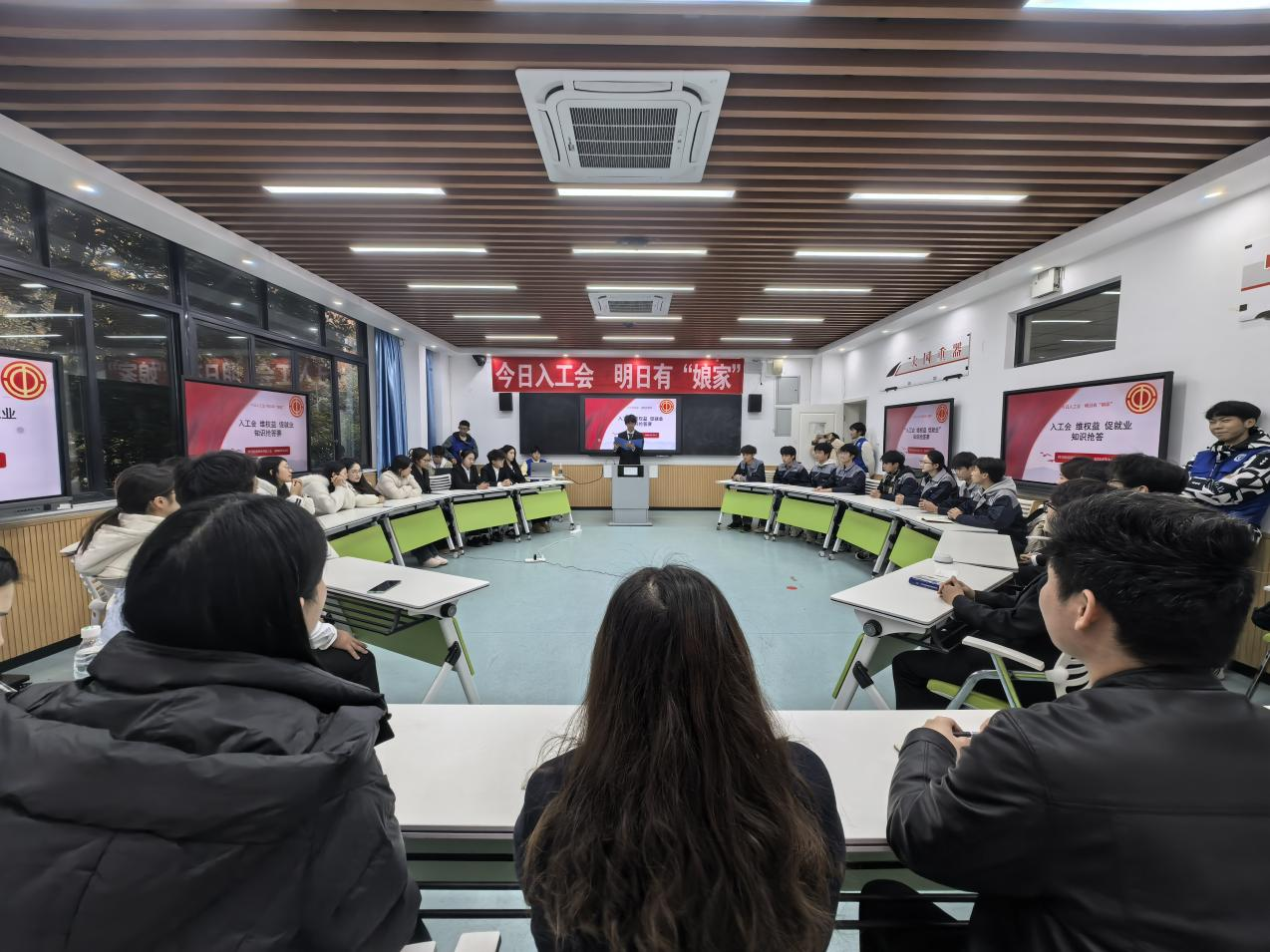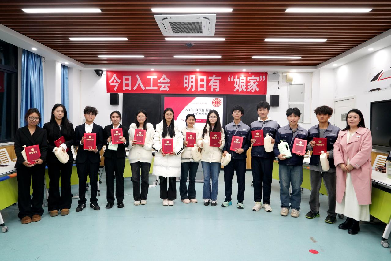 为深入推动大学生认知工会组织核心职能,普及工会法律法规常识,强化学生就业维权意识,助力青年学子高质量就业,2025年11月24日下午,校工会主办的“入工会 维权益 促就业”工会知识抢答赛在一号教学楼1209教室圆满落幕。校工会全体工作人员及六个二级学院分工会带队老师全程参与,为赛事提供专业指导与保障。