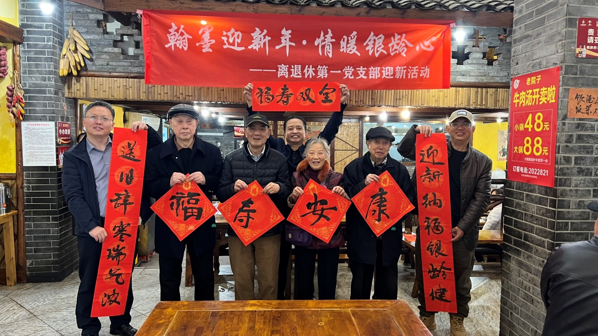为传承中华优秀传统文化,丰富退休同志精神文化生活,传递党组织的关怀与温暖,2025年12月2日,beat365在线唯一官网离退休第一党支部在新华路老院子土菜馆成功举办“翰墨迎新年·情暖银龄心”迎新活动,支部全体退休人员欢聚一堂,共迎新年。