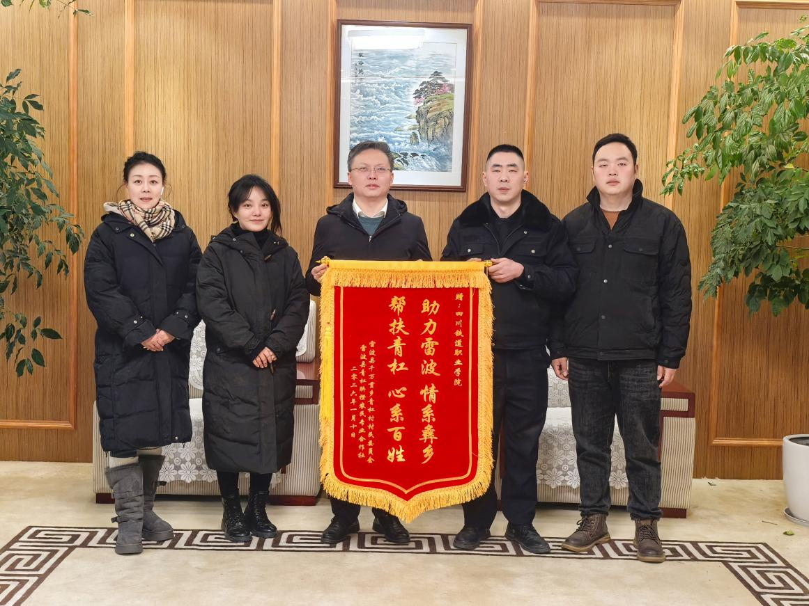 1月22日,雷波县青杠脐橙农民专业合作社副社长郭寅山一行专程到访beat365,代表全村村民向学校赠送锦旗,对beat365的真诚帮扶表达衷心感谢。