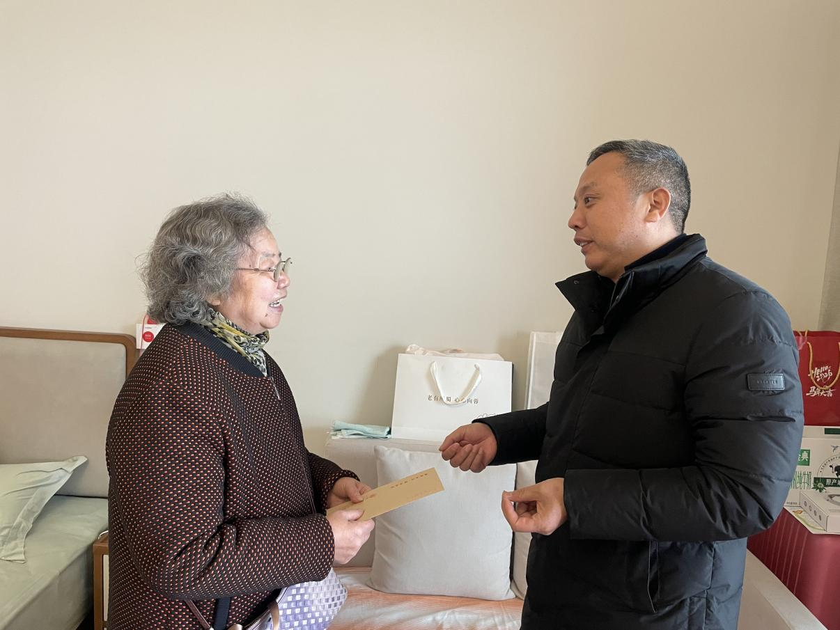 贺兆轩带队走访慰问离退休第三党支部老党员罗锡芸同志,为老同志送上新春祝福与慰问品。慰问中,与老同志亲切交谈,关切询问身体状况与生活情况,感谢其为学校发展作出的贡献,让老同志深切感受到组织的关怀与温暖。