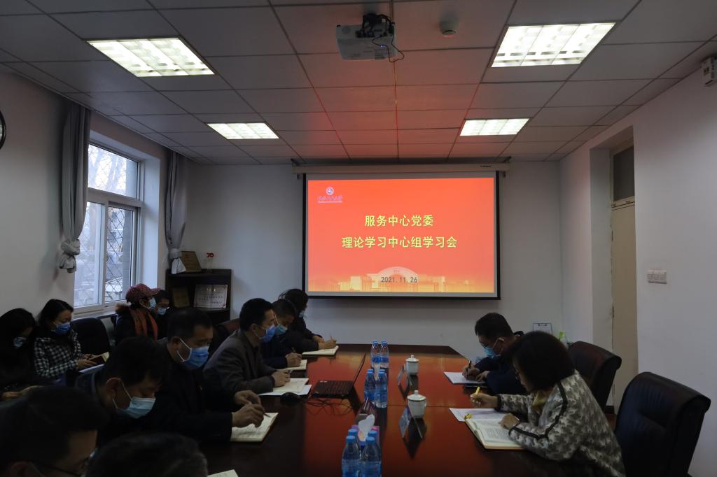 11月26日上午,服务中心党委理论学习中心组在一公寓114会议室集中学习党的十九届六中全会精神。服务中心党委委员、党支部书记及各部门副经理以上人员参加了会议,学校党委理论学习中心组巡听工作小组成员校办副主任刘侠、宣传部副部长陈国秀列席会议。党委书记张加强以《学习贯彻党的十九届六中全会精神,担当使命,勇毅前行》为题,带领大家集体学习了党的十九届六中全会精神。学习内容涵盖了全会的重要意义、基本情况、主要议...
