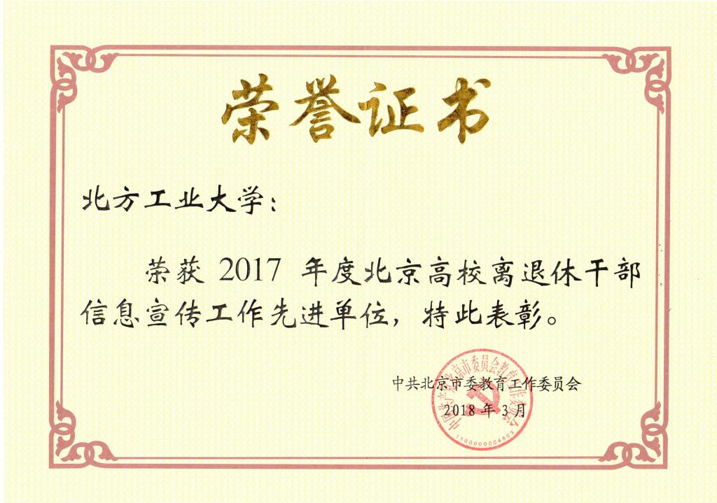 日前,在2018年北京高校离退休工作部门负责人会议上,Beat365被评为“2017年度北京高校离退休干部信息宣传工作先进单位”。多年来,Beat365一直高度重视离退休信息宣传工作,把信息报送工作放在突出位置,多次获得北京市教育工委颁发的“北京高校离退休干部信息工作先进单位”称号。为了确保信息报送质量,离退休工作处指定专人负责新闻稿件的撰写和图片筛选,多次邀请摄影协会的专家对宣传报道员进行摄影知识培训,以提高新闻图片质...