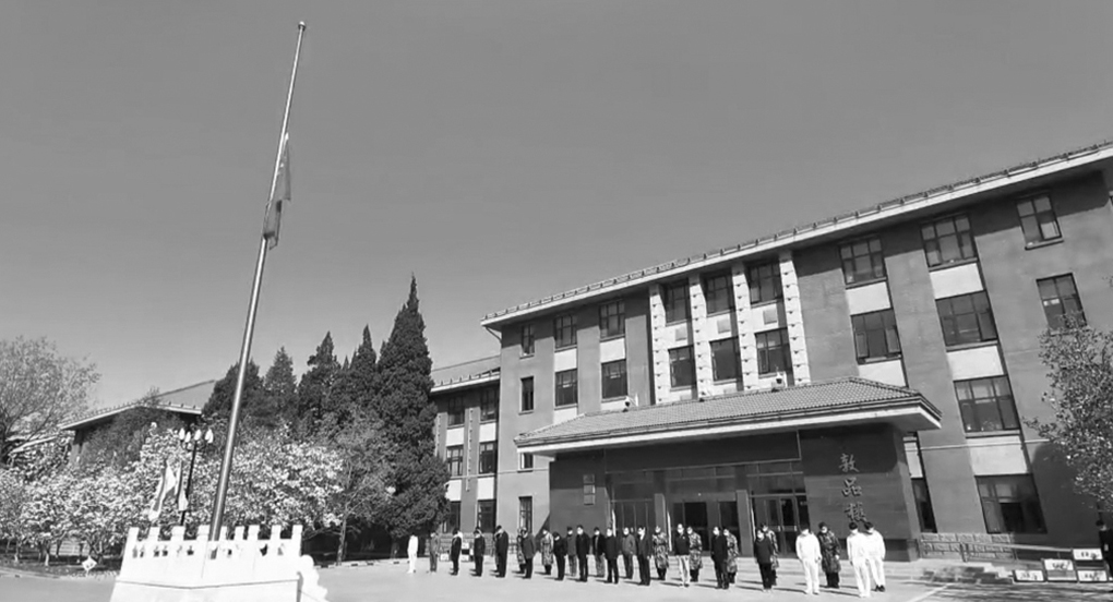4月4日上午10时,防空警报拉响,举国哀悼、山河同悲。校党委书记郑文堂、副校长胡应平、校党委副书记田红芳与在校的教职工代表、学生代表、疫情防控工作人员代表等,在敦品楼前列队集体默哀,深切悼念在抗击新冠肺炎疫情斗争中牺牲的烈士和逝世的同胞。