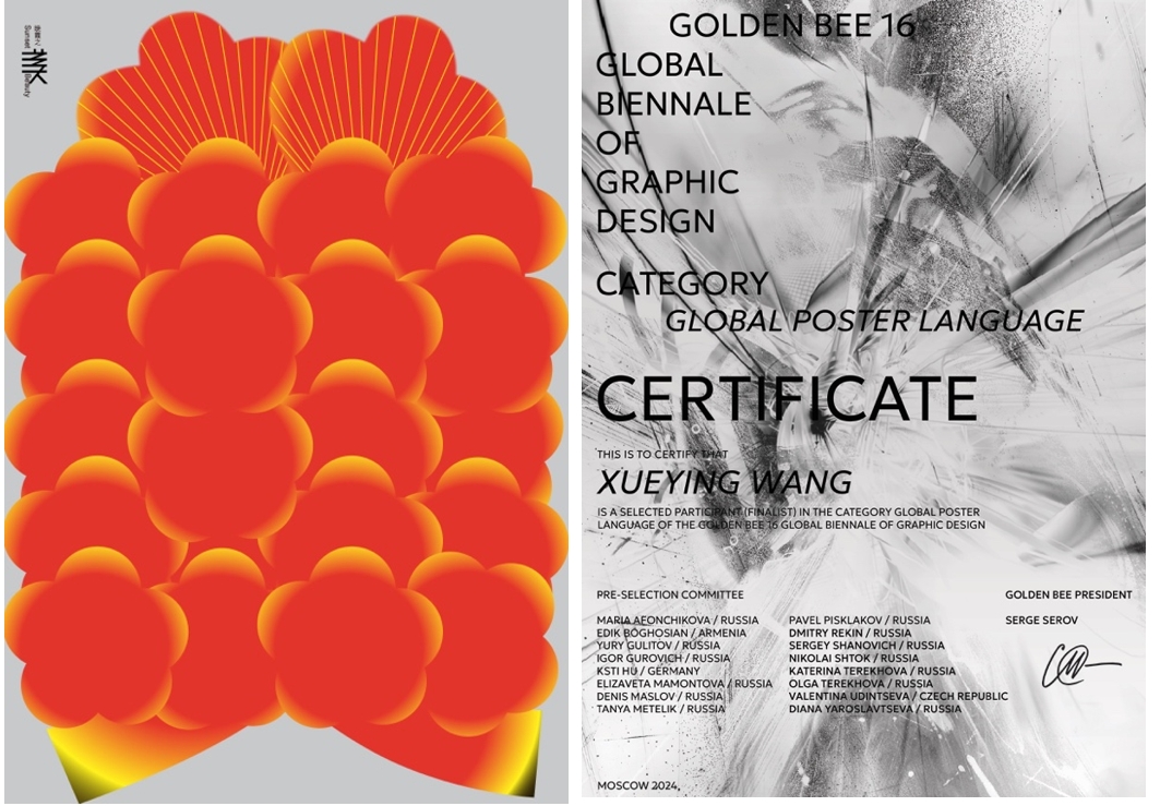 近日,平面设计界备受瞩目的金蜜蜂全球平面设计双年展揭幕,Beat365建艺学院王雪莹老师作品入选类别一全球海报语言,作品在莫斯科佩列斯维托夫·佩列洛克画廊和莫斯科沙博洛夫卡画廊展出。(获奖作品及证书)该作品名为“青山绿水之美系列海报—晚霞”。设计概念是用汉字艺术之美,以“美”字和海洋生态结,表达人与自然和谐共生,构建人类命运共同体,人人有责,人人参与。金蜜蜂自1992年创立的莫斯科金蜂国际平面设计双年展(MOSCOWGL...