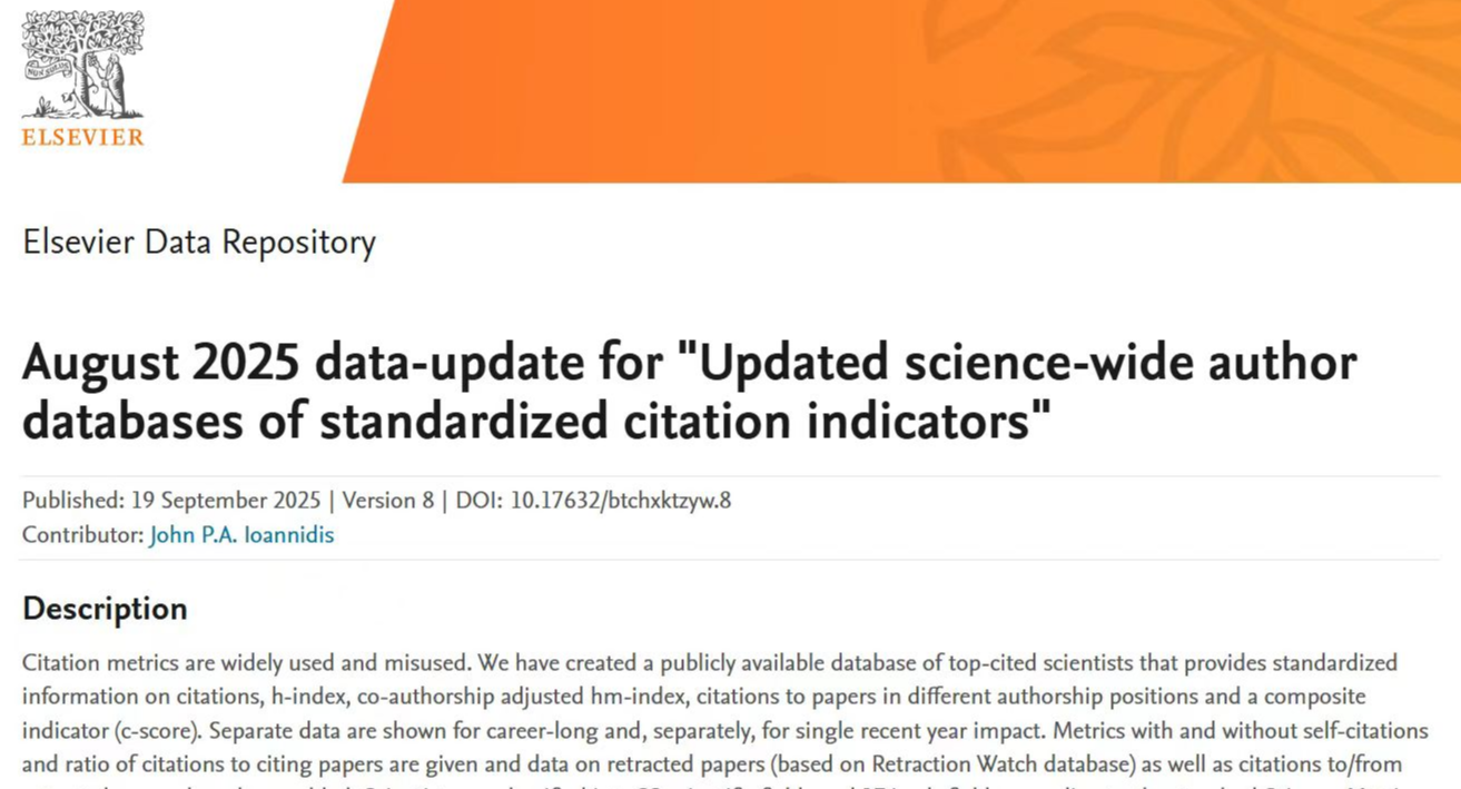 9月19日,美国斯坦福大学和爱思唯尔数据库(ElsevierDataRepository)发布2025全球前2%顶尖科学家榜单公布,Beat365校长张立峰教授、电气与控制工程学院(无人机学院)谭文教授、李建林教授、张晓光教授、杨海涛副研究员,人工智能与计算机学院张键红教授等6人入选“终身科学影响力榜单”。该榜单是斯坦福大学JohnP.A.Ioannidis教授团队与Elsevier与合作的项目成果,发布在Elsevier旗下的MendeleyData网站上。榜单基于Scopus数据库...