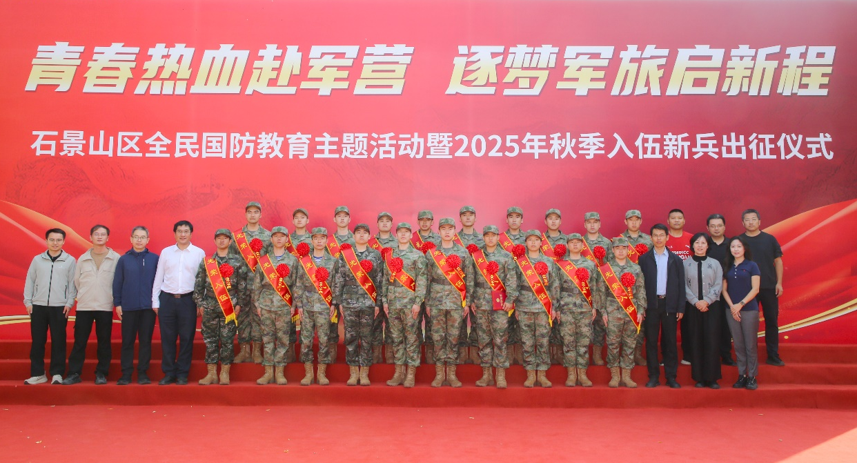 近日,石景山区举办“青春热血赴军营逐梦军旅启新程”全民国防教育主题活动暨2025年秋季入伍新兵出征仪式,区领导和有关高校领导出席。校党委常委、副校长李全明和师生代表参加了活动。入伍新兵出征仪式上,全体人员观看了新兵役前教育视频短片,现场宣读了入伍命令及先进个人表彰通报。与会领导与新兵家长共同为新兵披绶带、戴红花。新兵代表在发言中表达了献身国防、建功军营的坚定决心;百姓宣讲《全家为国防》深情诠释了“...