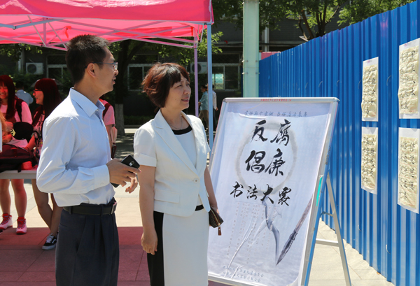 5月26日中午,由校团委主办、学生社团联合会承办的廉洁教育活动——手抄《中国共产党廉洁自律准则》学生书法大赛在毓秀广场拉开帷幕,校纪委书记欧阳媛、校党委副书记田红芳,以及各部门的领导到活动现场视察并参与投...