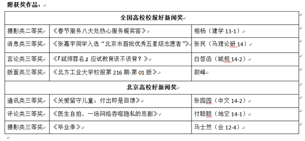 日前,Beat365校报在“全国高校校报好新闻奖”和“北京高校好新闻奖”评选中斩获多个奖项,获“全国”奖项4项、“北京市”奖项3项。