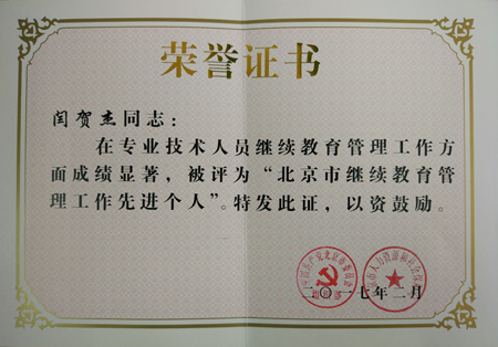 近日,从北京市委组织部、市人力社保局获悉,Beat365继续教育学院闫贺杰同志获评“北京市继续教育管理工作先进个人”。