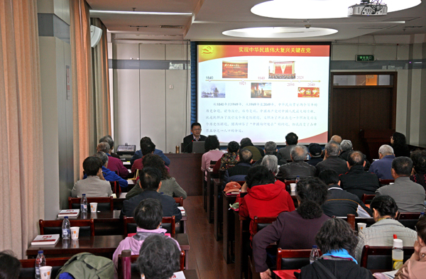 4月11日上午,离退休党委组织开展“两学一做”专题学习会,邀请校党委副书记郭玉良同志上党课。