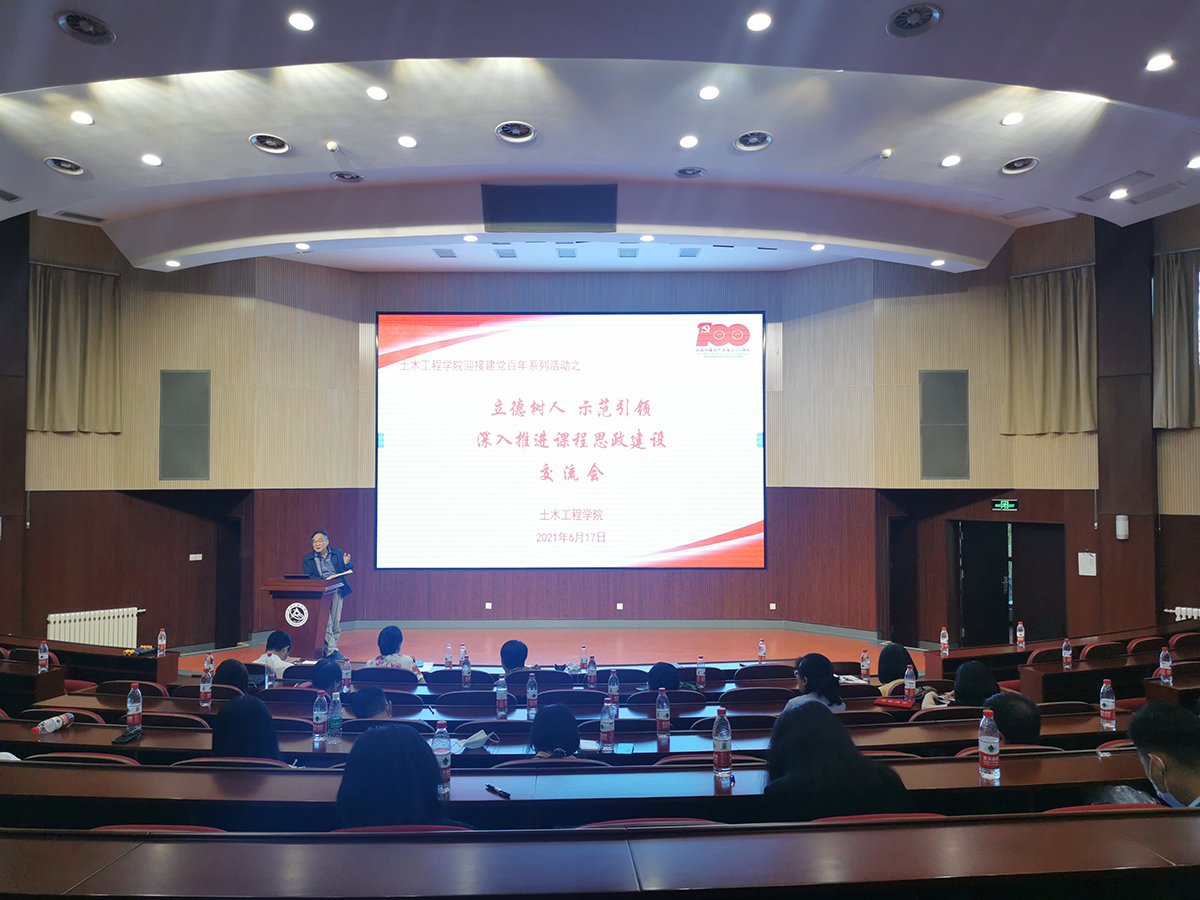6月17日下午,土木工程学院在文化会堂隆重举行迎接建党一百周年大会,会上表彰了学院优秀共产党员、优秀党务工作者和先进党支部,并以“立德树人,示范引领,深入推进课程思政建设”为主题进行了交流。会议特别邀请到首届全国课程思政教学名师、信息学院张卫平教授点评指导。学院全体教职工和部分学生党员代表参加了会议。会议由土木工程学院党委书记刘婉立主持。在课程思政交流会上,学院8位系(中心)主任和责任教师,结合自...