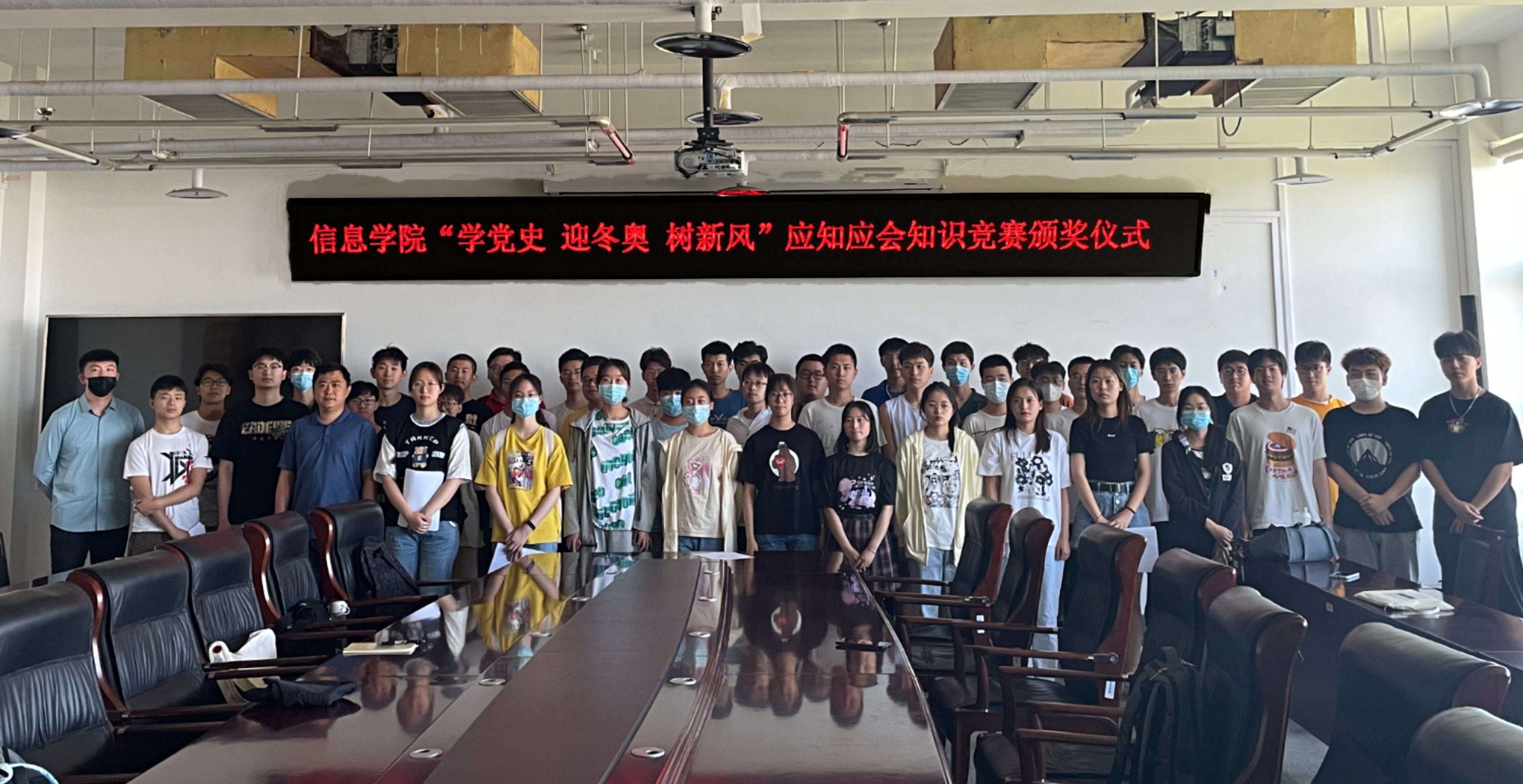 6月10日,信息学院在瀚学楼1014举行“学党史、迎冬奥、树新风”学生应知应会大赛颁奖典礼。本次大赛历时一周,由学院团委牵头,面向学院全体学生,近3000名学生参赛。同学们以班级为单位,通过微信小程序在线对“百年党史”、“绿色冬奥”、“学生手册”三个知识板块的相关试题进行答题。比赛根据参赛班级同学的答题满分率情况评比出一、二、三等奖。本次大赛恰逢庆祝建党百年前夕和2022年北京冬奥筹备关键时刻,将党史学习教育...