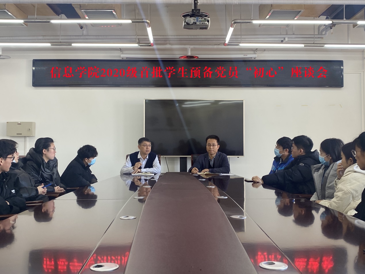 为进一步教育引导新发展预备党员端正入党动机,坚定理想信念,激发青春力量,12月31日,信息学院组织2020级新发展的(第一批)28名学生预备党员开展“初心”主题座谈会。百年初心,历久弥坚。辅导员靳现凯对新发展的首批28名预备党员表示祝贺,祝贺大家在建党100周年的伟大历史时期光荣加入中国共产党,感谢同学们为学院学生基层党组织注入新活力、增添新力量。靳现凯还简要阐释了对座谈会主题“初心”的思考,加入中国共产党,...