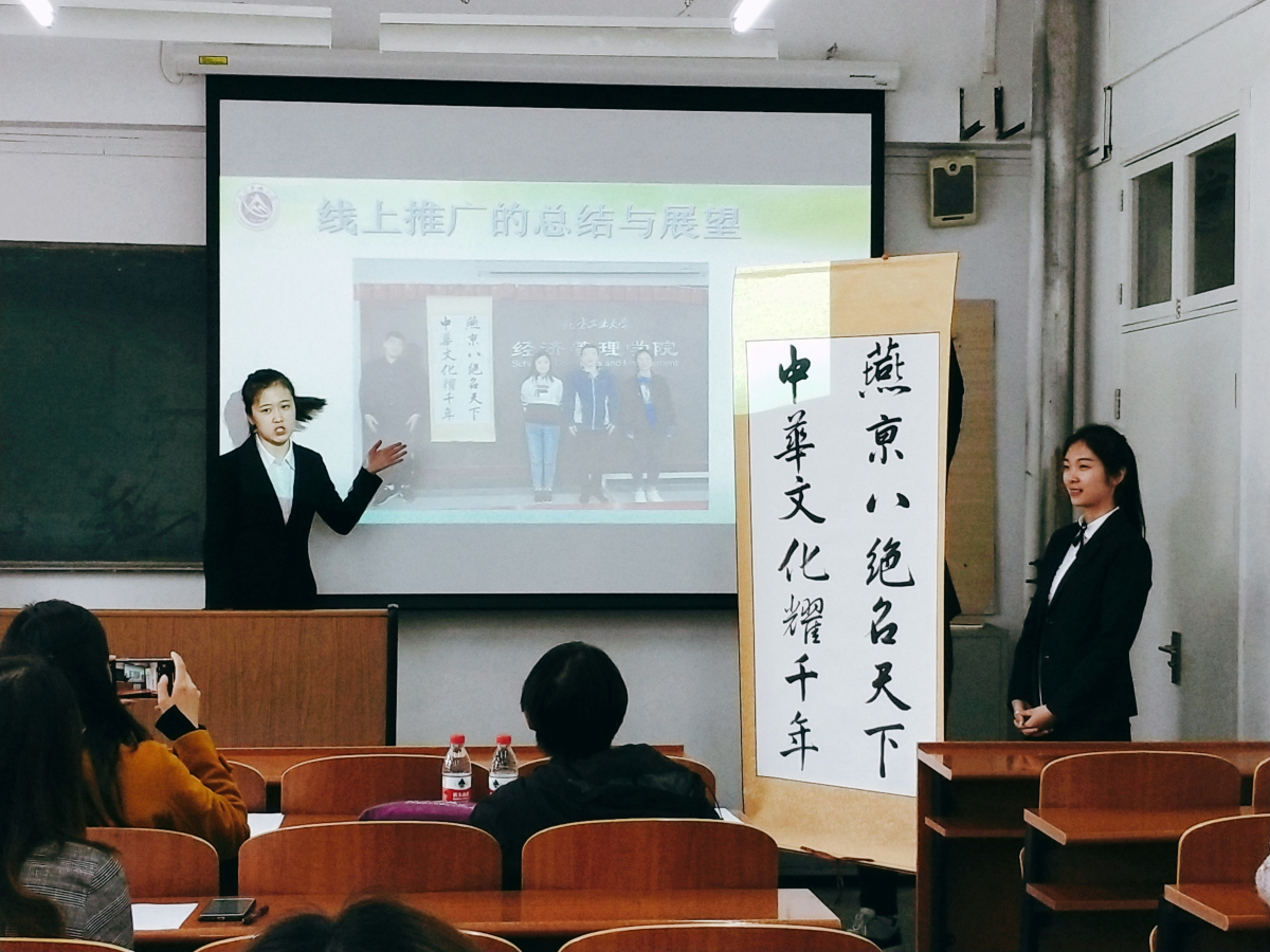 4月16日下午,由校团委主办、经济管理学院承办的首届非物质文化遗产传承创意营销大赛决赛在励学楼218教室举行。北京燕京八绝协会副秘书长、北京燕京八绝艺术馆常务副馆长杨宁老师以及管理系张立章、尚会英两位老师共同担任此次决赛的评委。决赛现场,同学们展示了各自的创意想法,大家有的结合校园生活设计了文创产品,有的结合新媒体弘扬传统文化,还有的结合当下非常流行的VR技术对非遗文化进行宣传。经过激烈的角逐,最终李...
