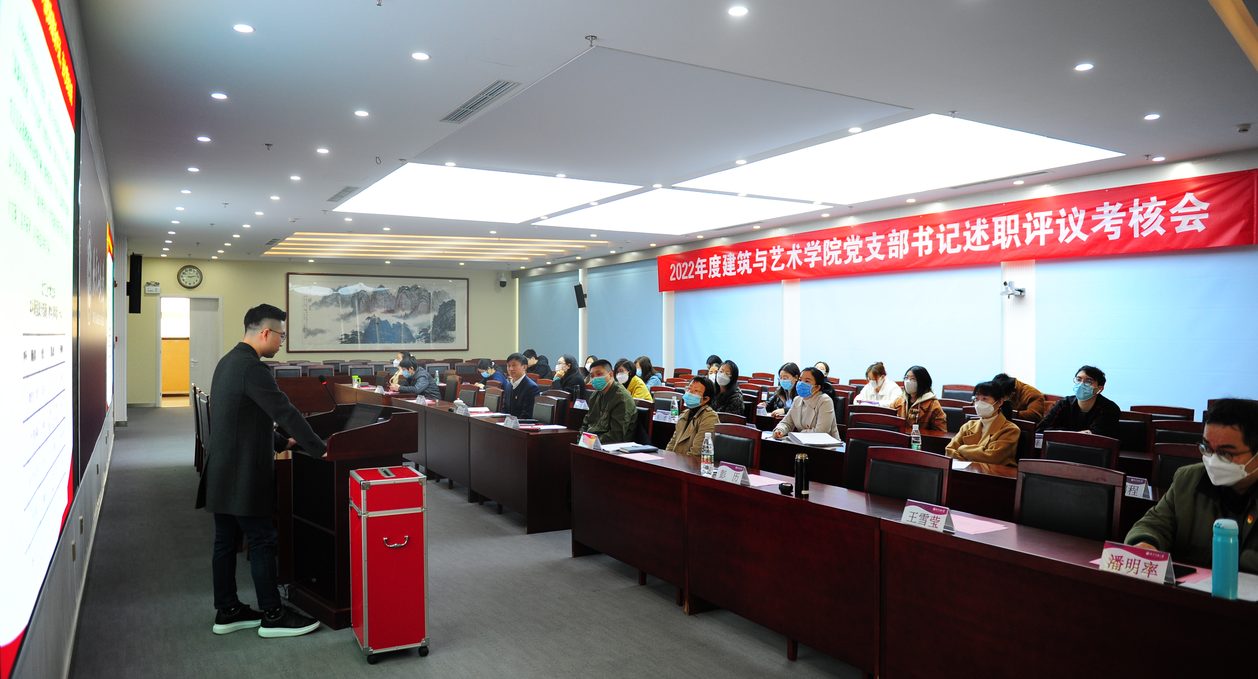 3月21日,建筑与艺术学院党委在浩学楼十五层报告厅组织召开2022年度党支部书记抓基层党建工作述职评议考核会。会议由学院党委副书记张丁主持,学院班子成员、党委委员、党支部书记、党员代表30余人参会。述职会上,12位党支部书记分别围绕支部党员政治理论学习、加强政治建设、落实学校党委重点任务及立德树人根本任务、党支部规范化建设、党建与业务融合、特色党建项目建设等内容总结年度工作,查摆存在问题,并介绍了下一步工...